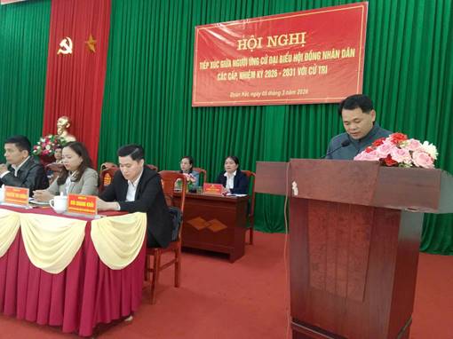 Cùng đó 5 ứng cử viên đại biểu HĐND xã Đoàn Kết thuộc đơn vị bầu cử số 4, nhiệm kỳ 2026 - 2031, lồng ghép với ứng cử đại biểu HĐND tỉnh để tiếp xúc cử tri của thôn Vằng Can gồm các ông, bà: Ông Sầm Văn Trọng, Ủy viên Ban Thường vụ, Chủ tịch Ủy ban MTTQ Việt Nam xã; ông Lý Văn Thành, Ủy viên Ban Thường vụ, Phó Chủ tịch UBND xã; bà Lê Thị Thu Huyền, Phó chủ tịch Ủy ban MTTQ Việt Nam xã, Chủ tịch Hội phụ nữ xã; bà Lương Thị Hồng, Chuyên viên Ủy ban MTTQ xã, Phó Chủ tịch Hội Phụ nữ xã và ông Chu Văn Long, Phó Trưởng Phòng Văn hóa - Xã hội xã Đoàn Kết.