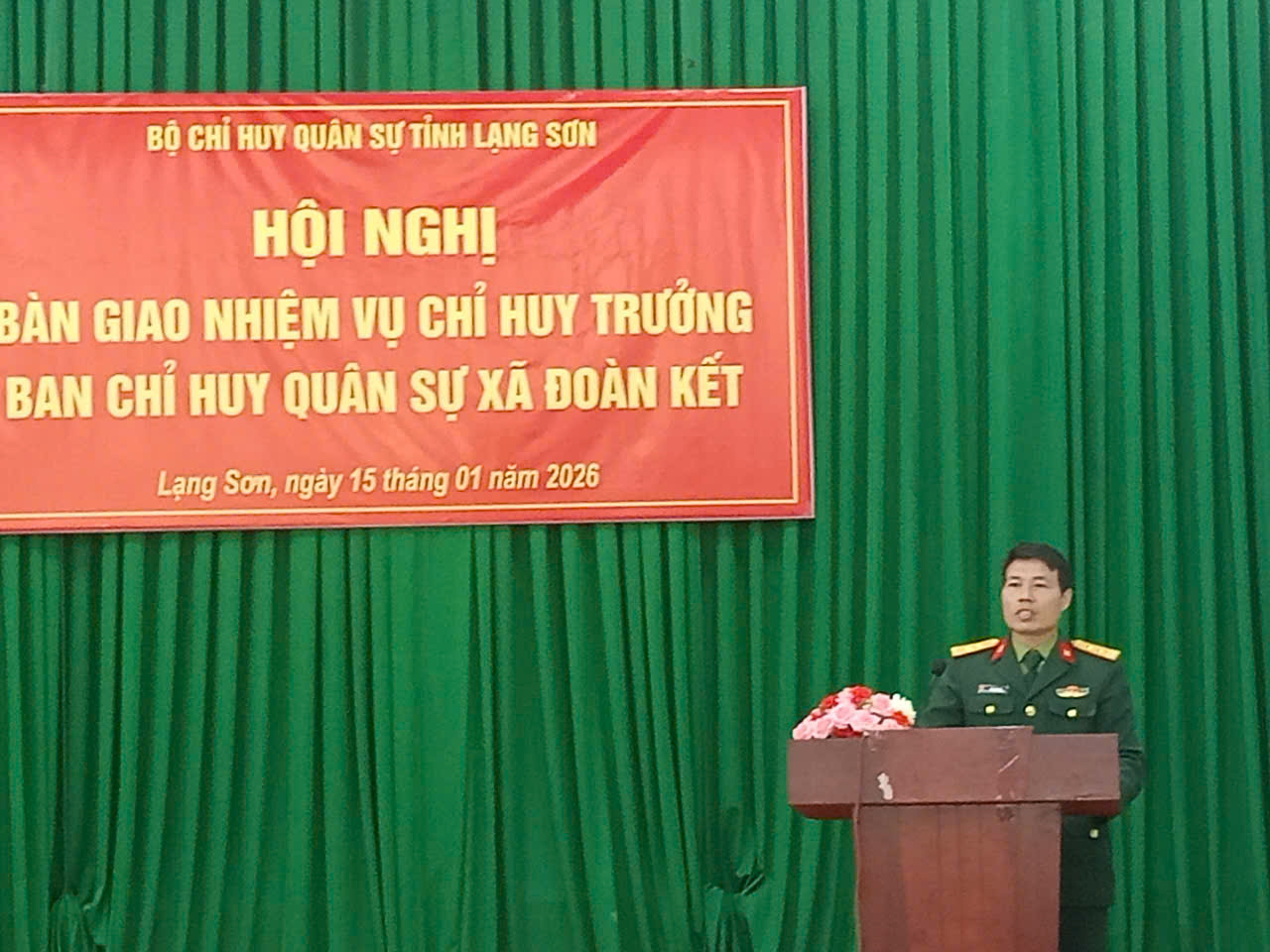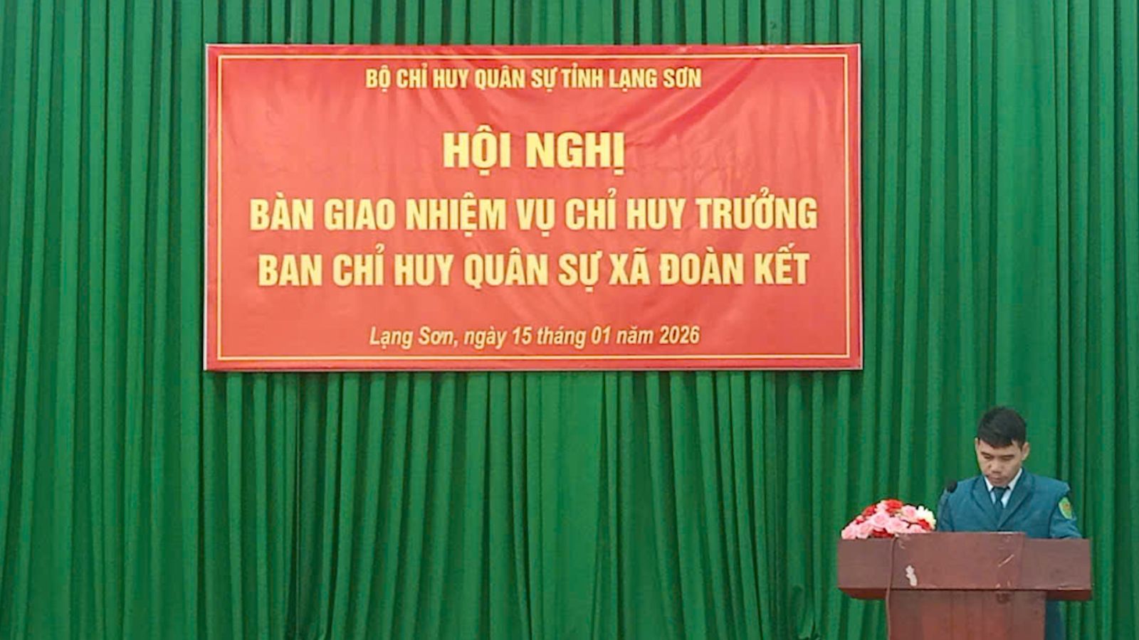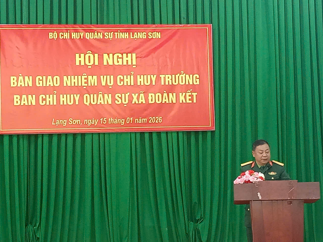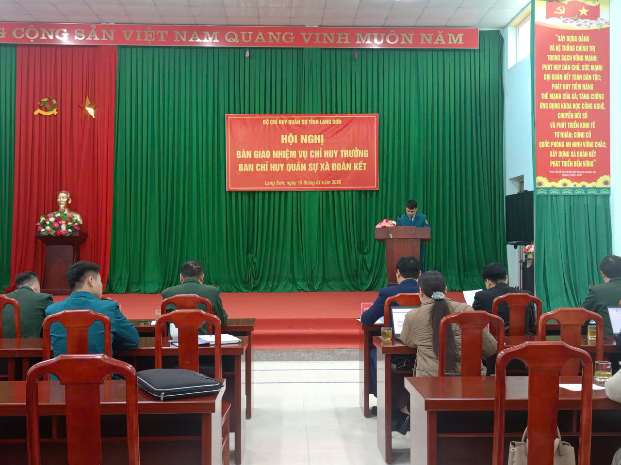 Sáng 15/01/2026, Ban Chỉ huy Phòng thủ khu vực 1 - Thất Khê phối hợp với cấp ủy, chính quyền xã Đoàn Kết tổ chức Hội nghị bàn giao chức vụ Chỉ huy trưởng Ban Chỉ huy Quân sự xã năm 2026.