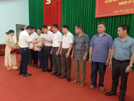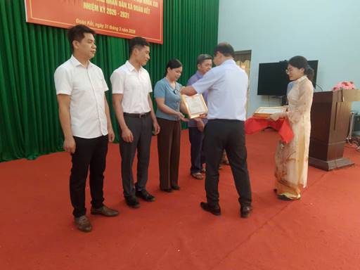 Đồng chí Chu Việt Hà, Phó Bí thư Thường trực Đảng ủy, Phó Trưởng Ban chỉ đạo bầu cử xã trao Giấy khen của Chủ tịch UBND xã cho 11 tập thể có thành tích xuất sắc.