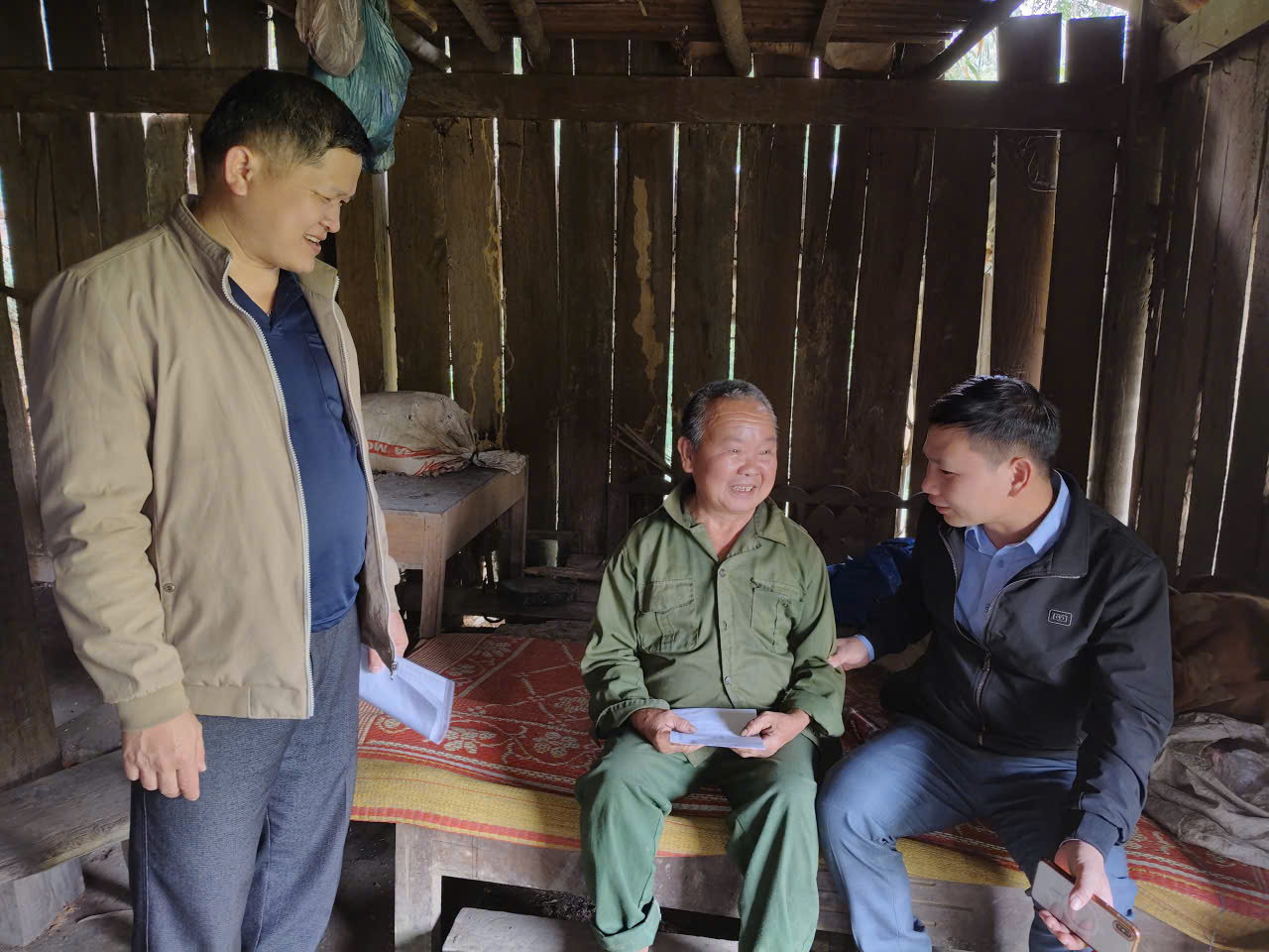 Tại các gia đình đến thăm, đồng chí Sầm Văn Trọng, Chủ tịch Ủy ban MTTQ Việt Nam xã chúc các gia đình đón Tết cổ truyền vui tươi, đầm ấm, hạnh phúc; mong muốn các gia đình nỗ lực vượt qua khó khăn, để vươn lên trong cuộc sống.