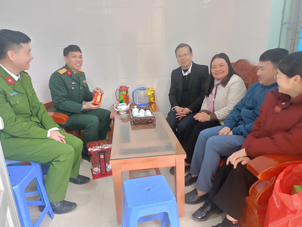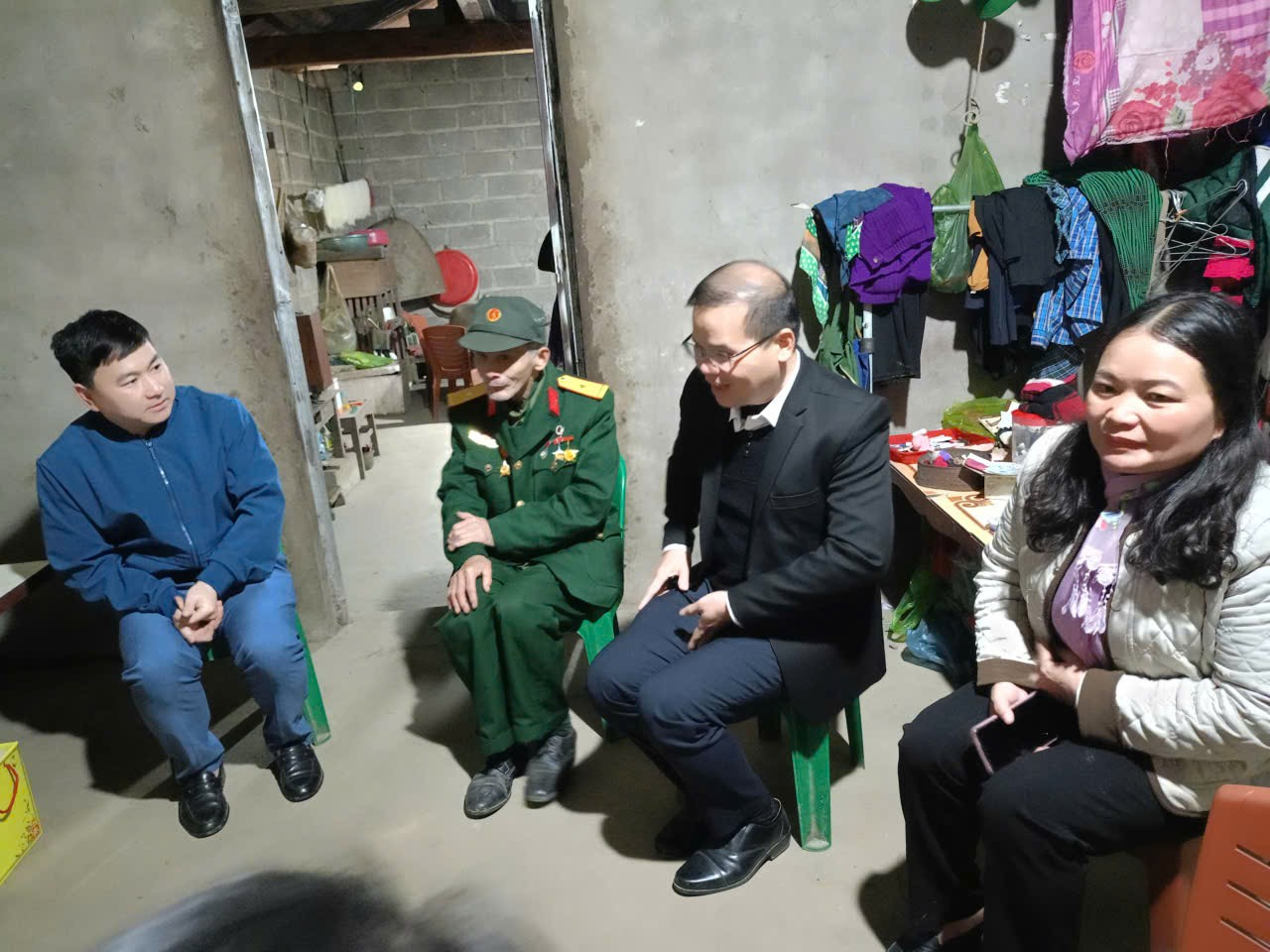 Tại 02 gia đình người có công, đồng chí Lý Văn Hơn, Bí thư Đảng ủy xã cùng đoàn công tác đã ân cần thăm hỏi, động viên người có công với cách mạng, mong muốn các gia đình tiếp tục thực hiện tốt chủ trương của Đảng, chính sách pháp luật của Nhà nước, tích cực tham gia phong trào thi đua yêu nước của địa phương, trao tặng mỗi gia đình 01 suất quà trị giá 800.000đ tiền mặt, trong đó có 200.000 đồng được trích từ quỹ “Đền ơn đáp nghĩa”.