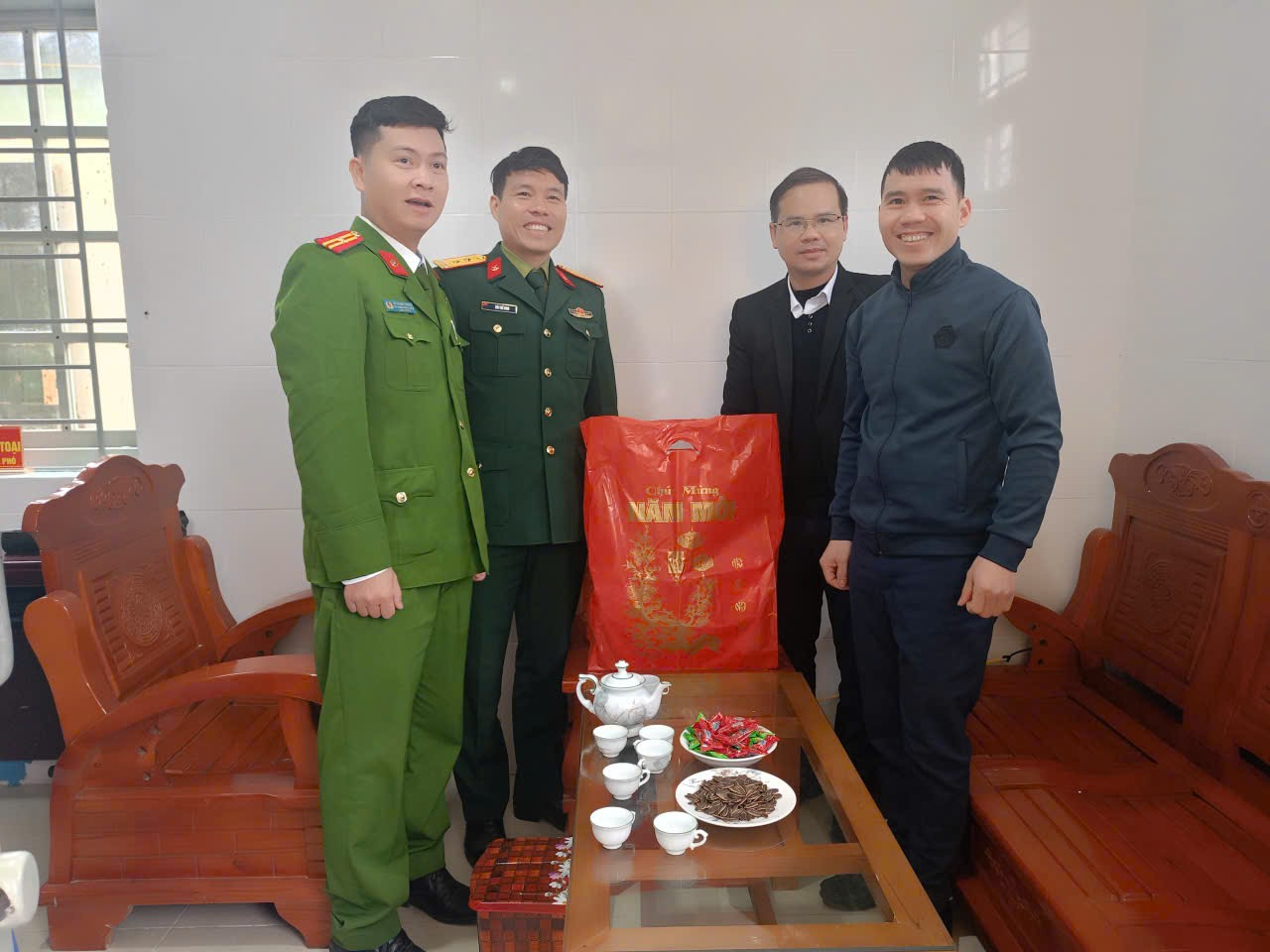 Cũng trong chương trình, Đoàn đã đến Ban Chỉ huy Quân sự xã thăm hỏi, tặng quà Tết 2026. Tại đây đồng chí đã thăm hỏi, chúc Tết đến Chỉ huy, cán bộ đơn vị và mong rằng, thời gian tới Ban Chỉ huy Quân sự xã tiếp tục làm tốt công tác tham mưu cho cấp uỷ chính quyền địa phương trong lãnh đạo, chỉ đạo thực hiện nhiệm vụ quốc phòng - quân sự địa phương; chủ động nắm chắc tình hình, phối hợp chặt chẽ với các lực lượng liên quan, góp phần giữ vững an ninh chính trị, trật tự an toàn xã hội trên địa bàn xã, đồng thời tặng 01 suất quà bằng hiện vật trị giá 1.000.000đ.