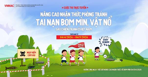Hưởng ứng Ngày Quốc tế nhận thức bom mìn và hỗ trợ hành động bom mìn 04/4/2026, Trung tâm Hành động bom mìn quốc gia Việt Nam (VNMAC) tổ chức Cuộc thi trực tuyến “Nâng cao nhận thức phòng tránh tai nạn bom mìn vật nổ sau chiến tranh ở Việt Nam” trên phạm vi toàn quốc.