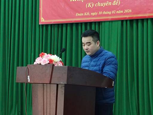 Chiều 10/02/2026, Đảng uỷ xã Đoàn Kết, tỉnh Lạng Sơn tổ chức hội nghị Ban Chấp hành Đảng bộ xã khóa I, nhiệm kỳ 2025 - 2030 (kỳ chuyên đề); triển khai một số nội dung trước, trong và sau Tết Nguyên đán Bính Ngọ năm 2026.
