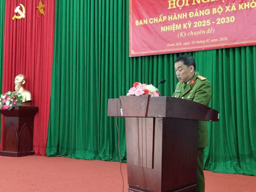 Trong chương trình, Trung tá Nông Trung Kiên, Ủy viên Ban Thường vụ Đảng uỷ xã, Trưởng Công an xã báo cáo nhanh tình hình an ninh chính trị, trật tự an toàn xã hội và trật tự an toàn giao thông trên địa bàn xã trong thời gian qua; đồng thời quán triệt, triển khai một số nội dung về công tác đảm bảo ANTT trước, trong và sau Tết Nguyên đán Bính Ngọ năm 2026 và phục vụ cuộc bầu cử đại biểu Quốc hội khoá XVI và đại biểu HĐND các cấp nhiệm kỳ 2026 - 2031. Trong đó, lực lượng Công an xã sẽ tăng cường nắm chắc tình hình địa bản, chủ động phòng ngừa, đấu tranh với các loại tội phạm; đẩy mạnh tuần tra, kiểm soát, bảo đảm trật tự an toàn giao thông; tập trung phòng, chống các hành vi buôn bán, vận chuyển, tàng trữ, sử dụng pháo nổ trái phép, kịp thời phát hiện, xử lý các vụ việc phát sinh, không để hình thành điểm nóng, góp phần giữ vững ổn định an ninh chính trị, trật tự an toàn xã hội trên địa bàn xã.