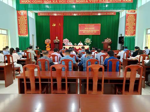 Các đồng chí Lý Văn Hơn, Bí thư Đảng ủy, Chủ tịch HĐND xã; đồng chí Chu Việt Hà, Phó Bí thư Thường trực Đảng ủy xã đồng chủ trì hội nghị.