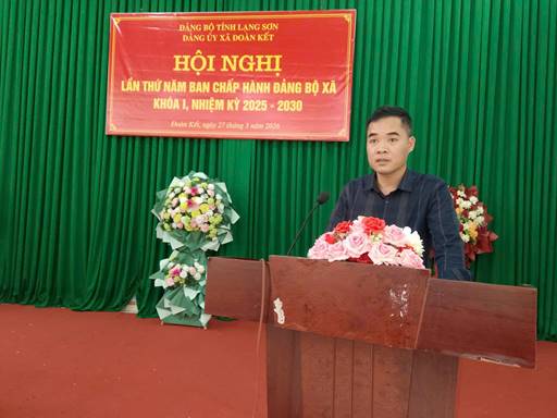 Sáng ngày 27/3/2026, Ban Chấp hành Đảng bộ xã Đoàn Kết, tỉnh Lạng Sơn tổ chức Hội nghị lần thứ Năm, nhiệm kỳ 2025 -2030 để thảo luận, đánh giá tình hình thực hiện nhiệm vụ quý I, thống nhất phương hướng, nhiệm vụ trọng tâm quý II năm 2026.